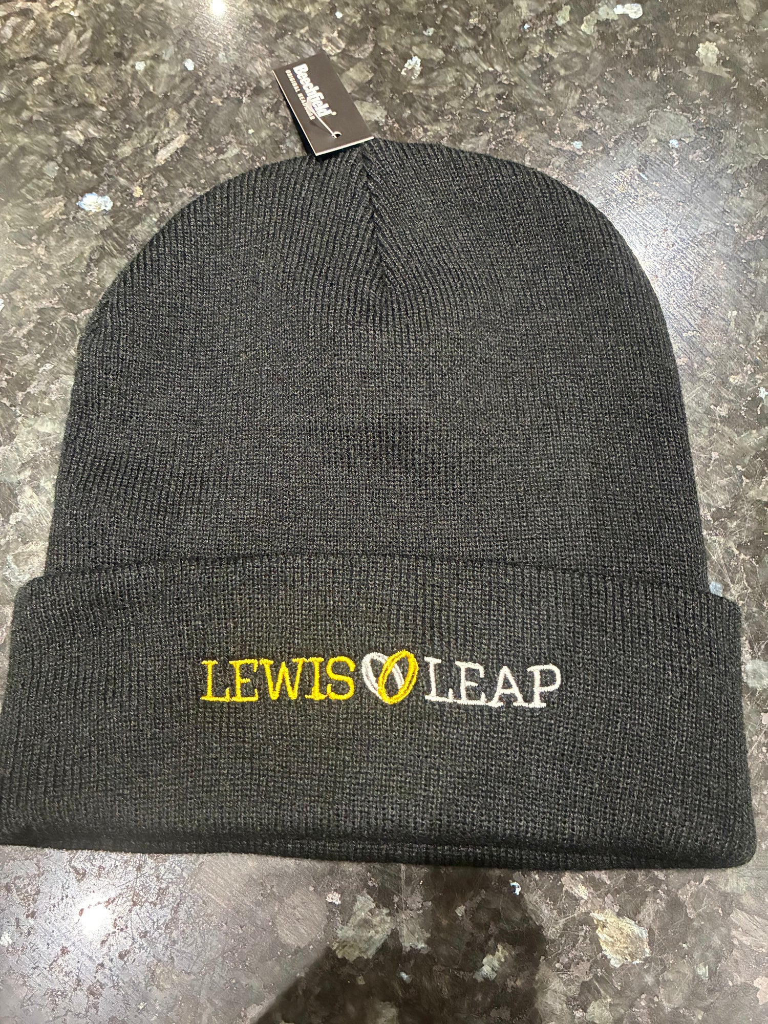 Stay warm while making a difference with this official Lewis Leap beanie. Featuring the distinctive Lewis Leap logo embroidered on classic black knit fabric, every purchase directly supports our Lewis Leap Sudden and Traumatic Bereavement Support Service